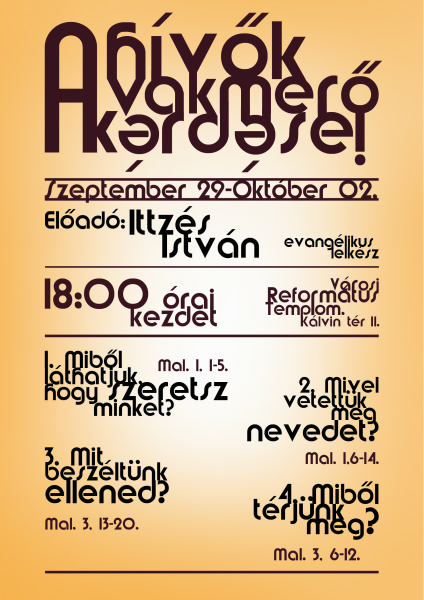 Helye: Emmaus Evangélikus Templom, (Korányi út 160/a)