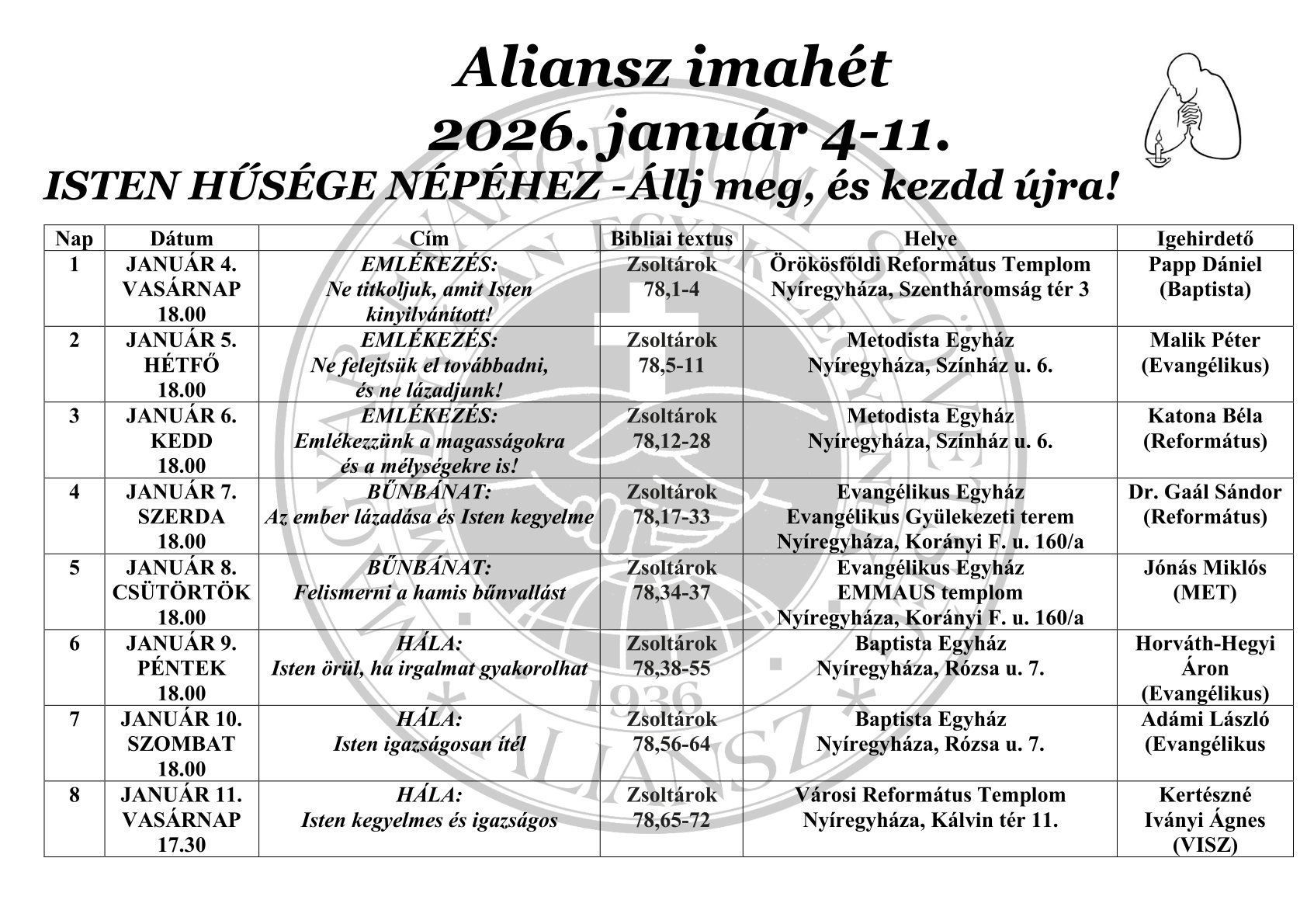 Szeretettel várunk minden érdeklődőt Egyházunk augusztusi csendesnapjára.
