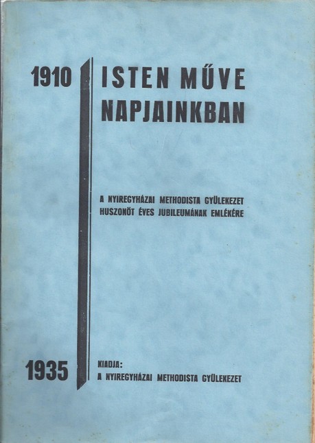 Az Isten műve napjainkban című kiadvány a gyülekezetünk keletkezésének történetét dolgozza fel. A "könyvet" Márkus J. András, a gyülekezet lelkésze írta, és a gyülekezet adta ki a közösség megalapításának 25. évfordulója emlékére 1935-ben. Mivel ez a gyülekezettörténeti szemponból fontos mű csak egy kiadást ért meg, és néhány példány maradt fenn az utókor számára, fontosnak tartjuk, hogy sokan olvashassák. Ezért elektronikus formában közkinccsé tesszük. Kívánjuk, hogy aki olvassa, hozzánk hasonlóan sok-sok áldást nyerjen általa.